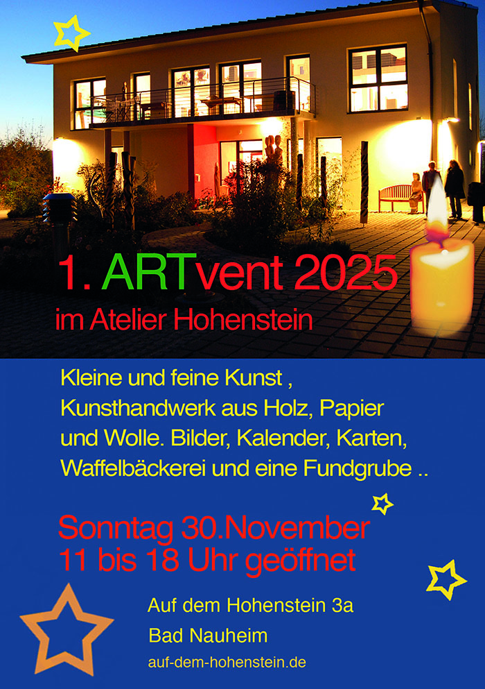 Es ist wieder so weit, am 1. Advent, Sonntag dem 30. November, findet wieder der ARTvent in unserem Atelier statt. Es wird wie immer kleine und große Kunst im Angebot sein. Dazu Kunsthandwerkliches aus Stoff, Papier und Holz, Karten und Kalender und wie immer kunstvoll Wärmendes aus Wolle. Um 11 Uhr geht es los und …